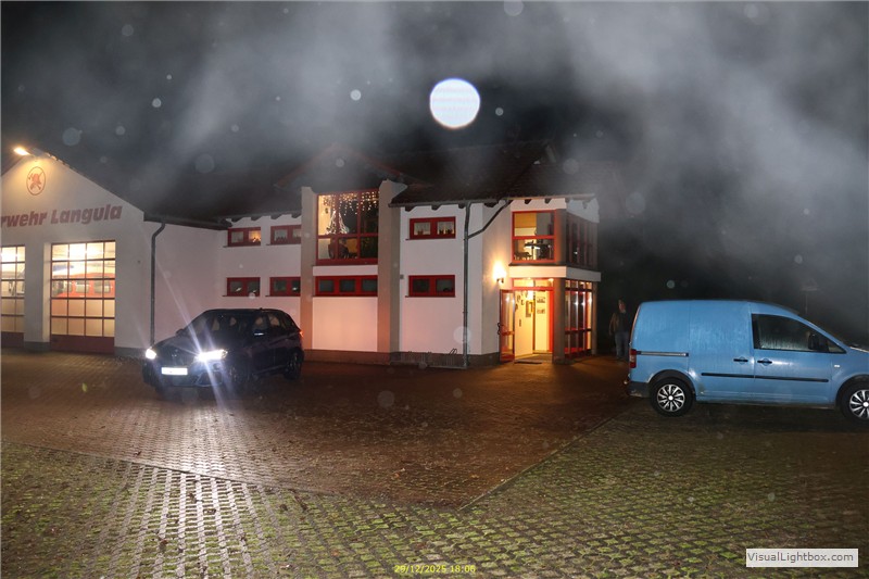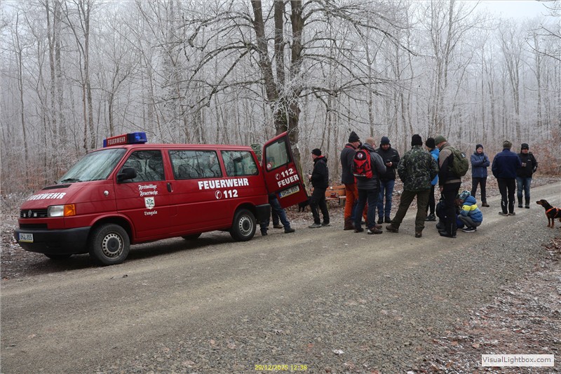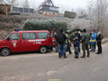 Heyerode. Die Straße ist glatt und es ist nebelig. Das Servicemobil mit A.John u. R.Goy begleiten uns.