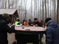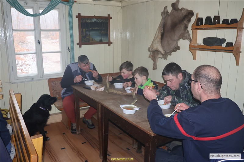 Diese große Rast (13.15 Uhr) machen wir wieder in der Jagthütte. Arndt u. Ronald haben gut eingeheizt.