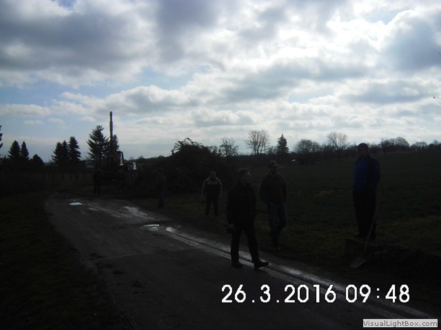 Im Ort sind einige Fahrzeuge unterwegs um Baumschnitt zum Gerätehaus zu bringen und der Hauf wird immer größer.