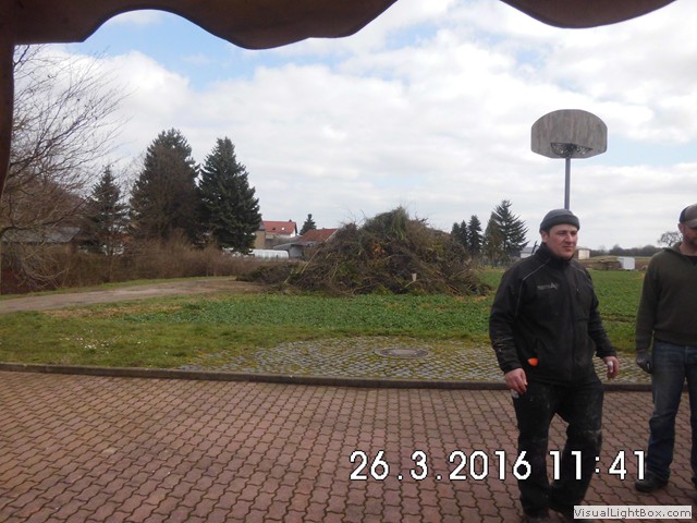 Fast alle Kameraden sind dabei um das Osterfeuer vorzubereiten. Es ist wie ein Ameisenhaufen u. die Arbeit geht gut voran.