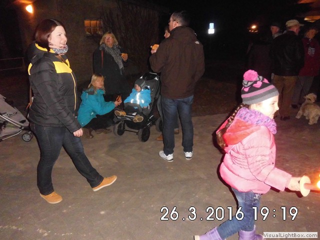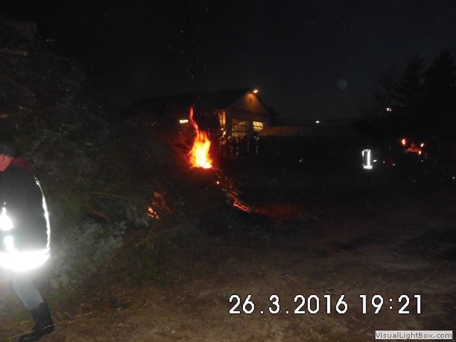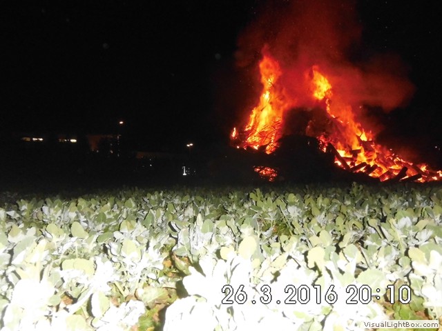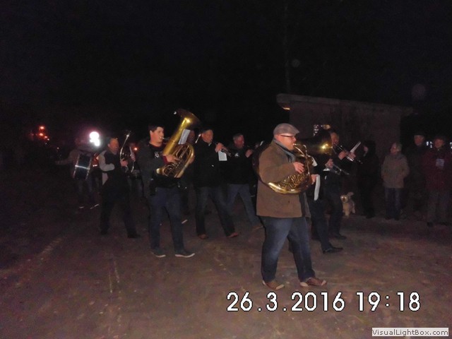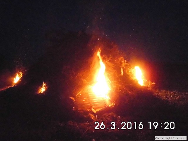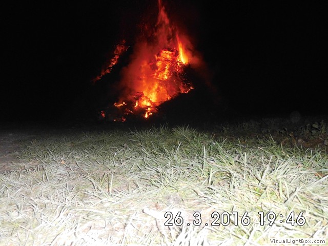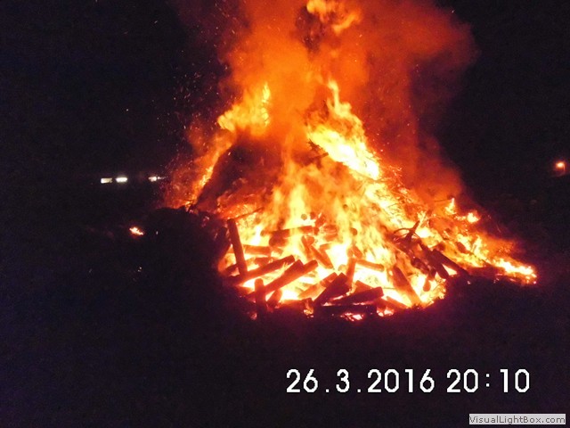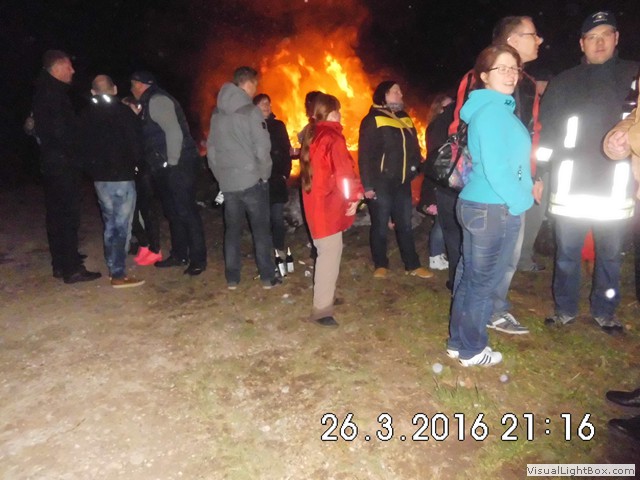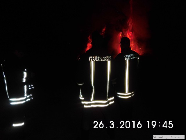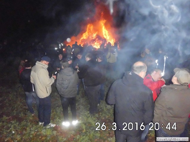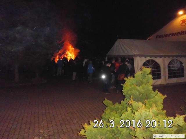 der Fackelumzug am Gerätehaus ein. Jetzt wird auch das Osterfeuer angezündet.