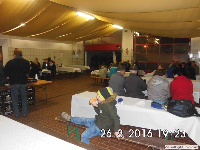 . In der Fahrzeughalle spielt die Musik u. die Stimmung ist gut.