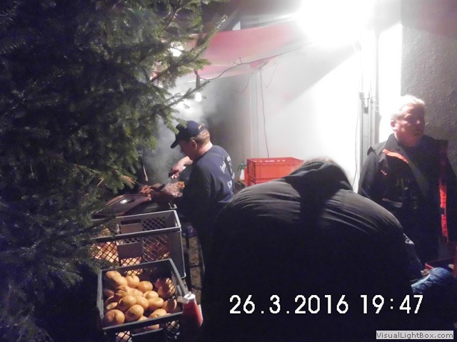 Der Andrang am Grill ist groß und das Osterfeuer 2016 ist sehr gut besucht. Auch die Fettbrote unserer Jungenfeuerwehr sind begehrt.