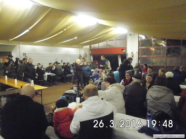 Wer dort keinen Platz mehr bekommt, verbringt den Abend am Feuer oder an den Stehtischen vor dem Gerätehaus.
