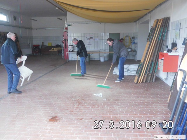 Jetzt noch alle Geräte wieder in die Fahrzeughalle schaffen und die Ordnung wieder herstellen.