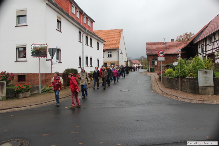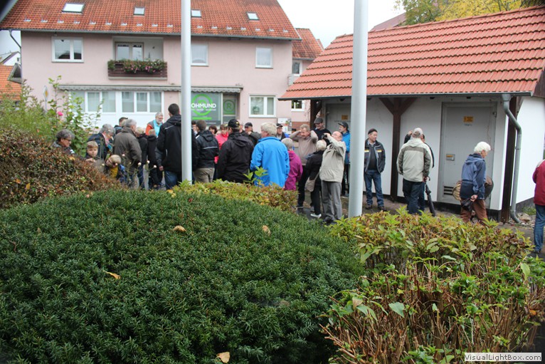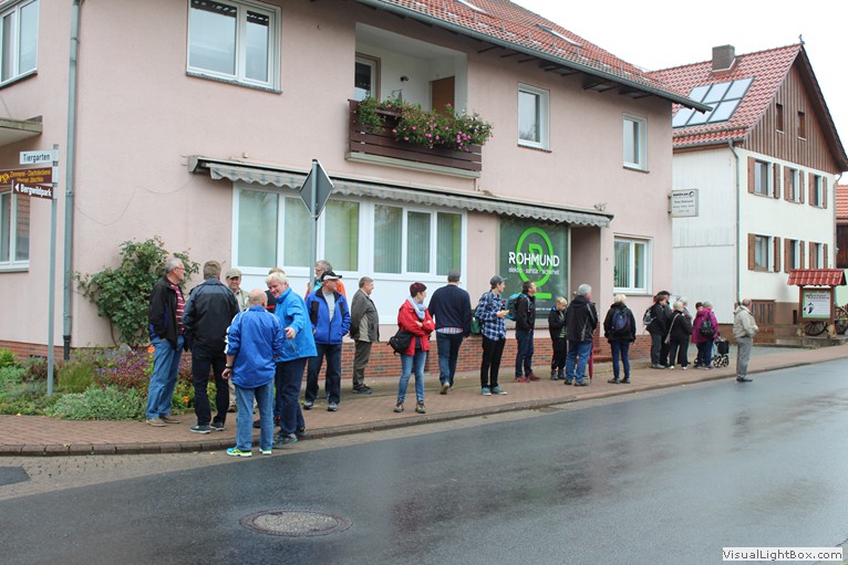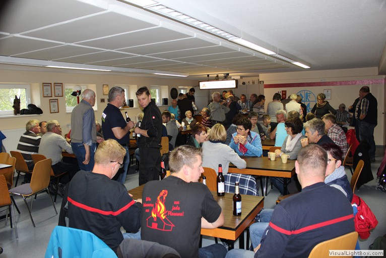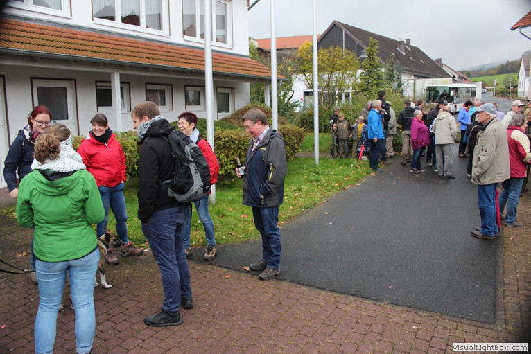 Nach kurzer Zeit treffen alle Teilnehmer am Bürgerhaus von Abterode ein. Hier wird schon fleißig eingeschänkt.