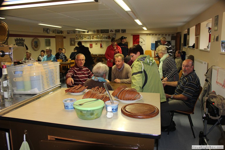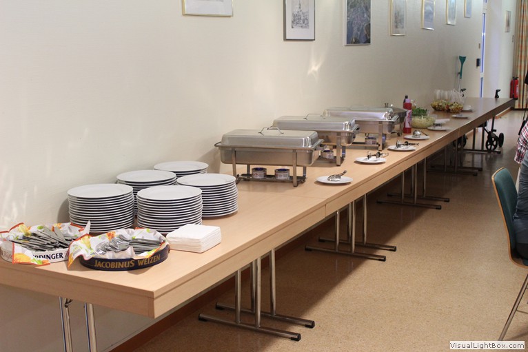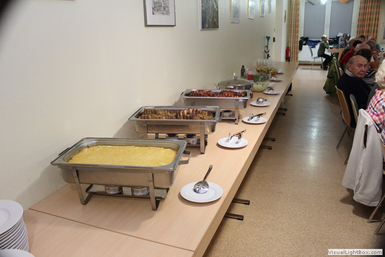 Ein freundlicher heller warmer Raum begrüßt uns, ein warmes Buffet ist auch schon vorbereitet und Getränke werden serviert.