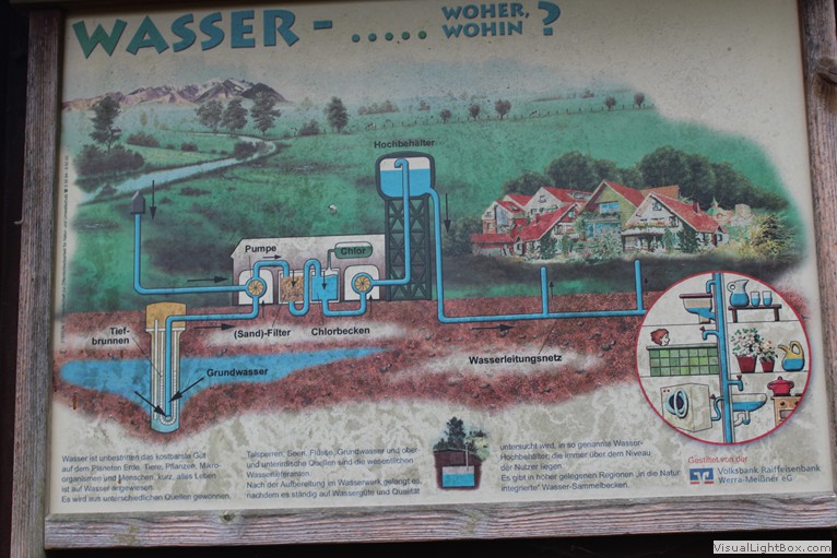 Bis nach Abterode ist es noch ein Stück zu wandern. Unterwegs steht auch wieder eine Tafel über die Wasserversorgung.