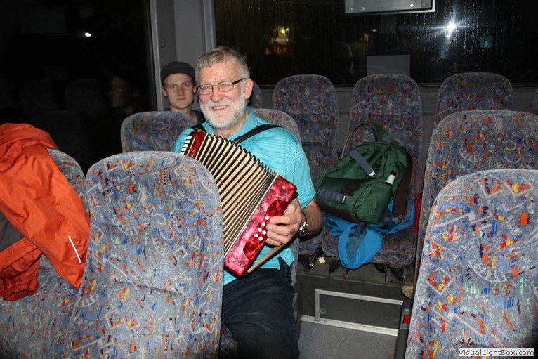 Auf der Fahrt nach Langula wird noch bei musikalischer Begleitung so manche Flasche geleert.