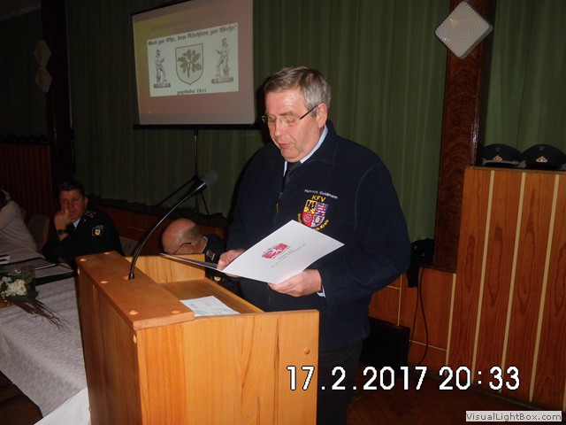 Unser Vereinvorsitzender J. Rollberg eröffnet die Versammlung. Danach verliest Wehrführer D. Fritzlar den Jahresbericht.