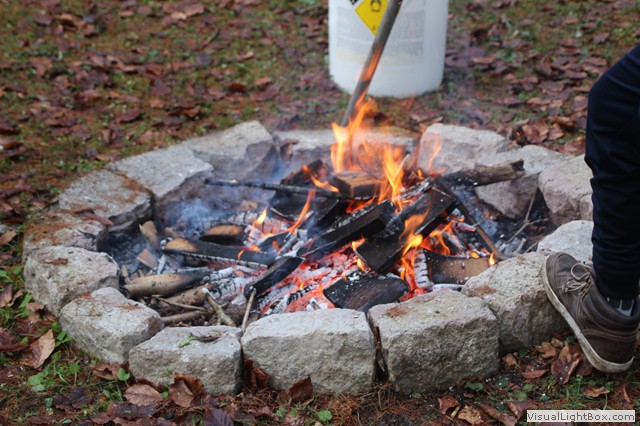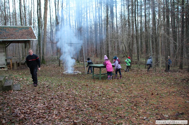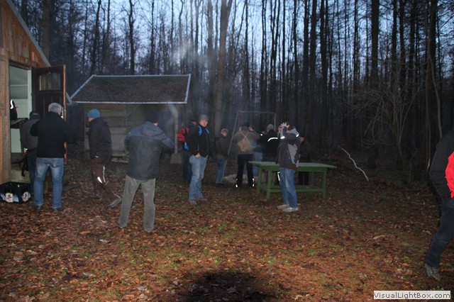 Ein Lagerfeuer begrüßt uns und die Hütte ist auch gut geheizt. Heiße Bockwürste liegen im Topf u. Die werden gern genommen.
