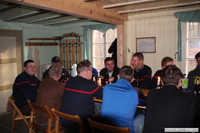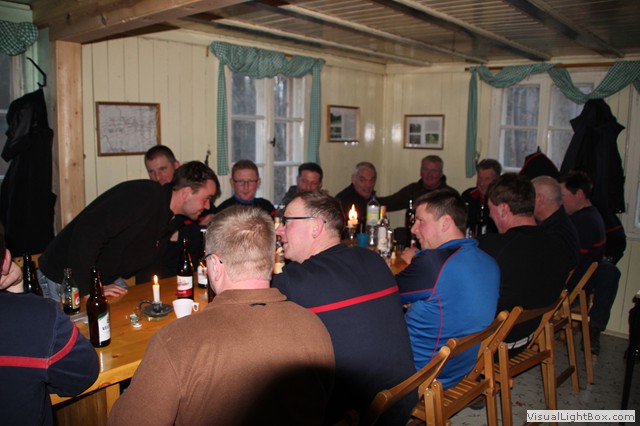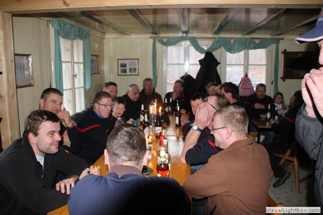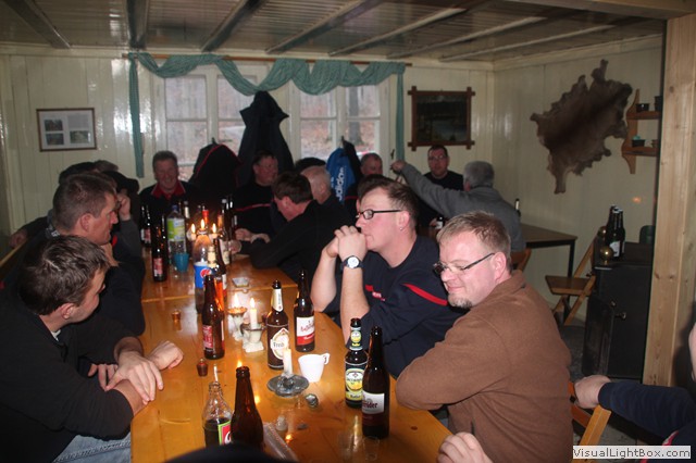 Die Kinder topen draußen rum und in der warmen Hütte wird so manches Fläschen in gemühtlicher Runde geleert.