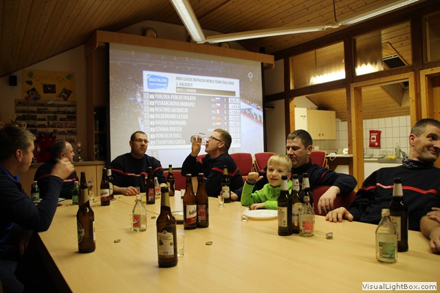 In gemühtlicher Runde wird nebenbei Wintersport geschaut. Wasser Marsch hört man nun oft.