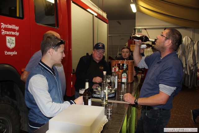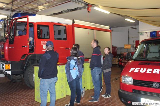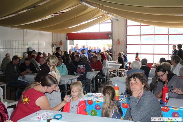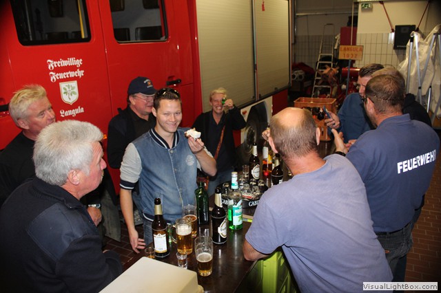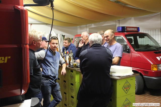 Die Gäste und Kamereaden amüsieren sich am Gerätehaus.