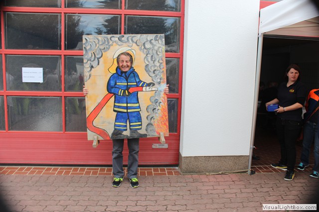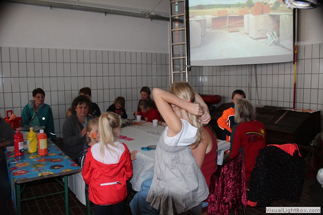 Die Fahrzeughalle ist sehr gut besucht. Die Mitarbeiter vom Kindergarten Langula sind auch da u. bemalen die Kinder.