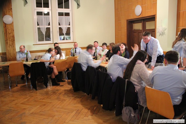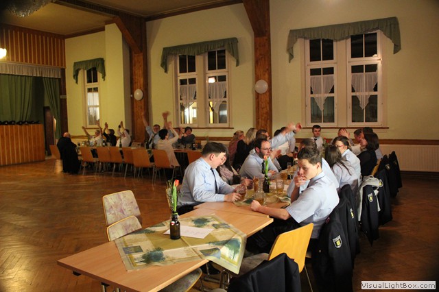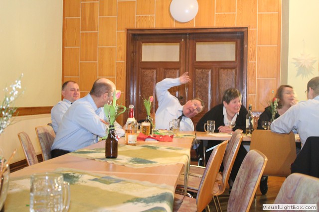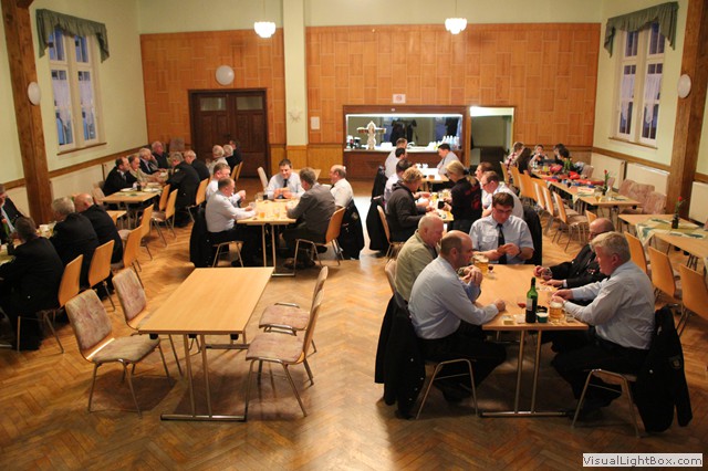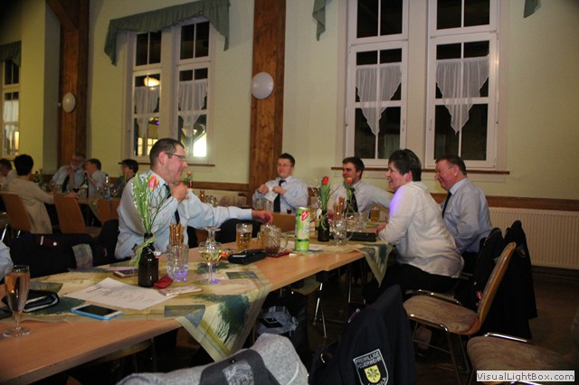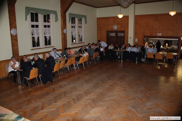 Gegen 19 Uhr treffen dann die Partner und andere Mitglieder ein. Es dauert noch eine Weile bis die alle Tische am Platz sind.