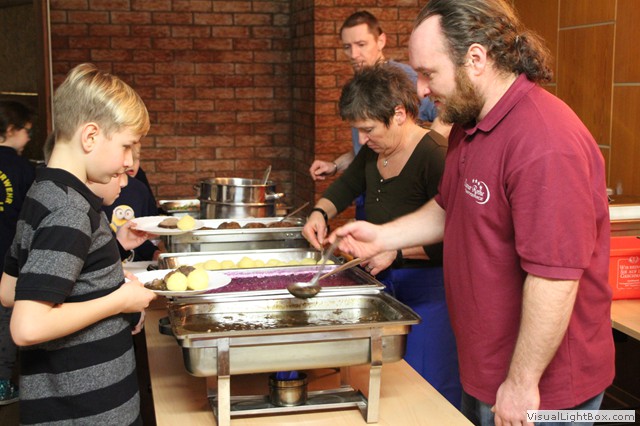 Die Jugenfeuerwehr ist natürlich zuerst am warmen Buffet und so könnte ein Teller aussehen.