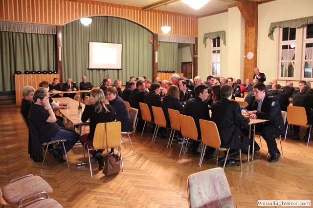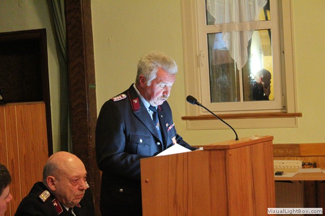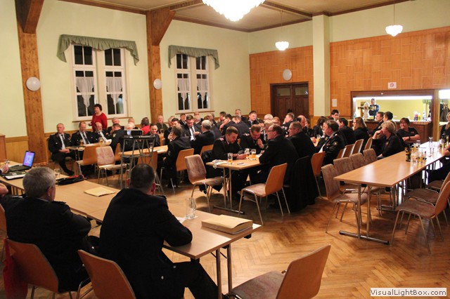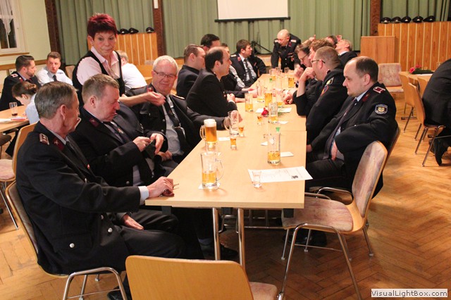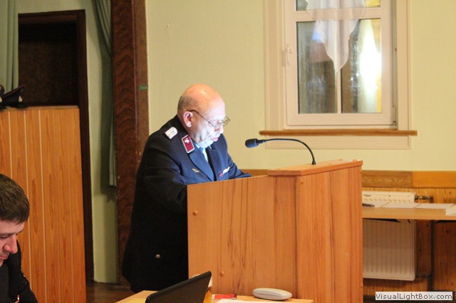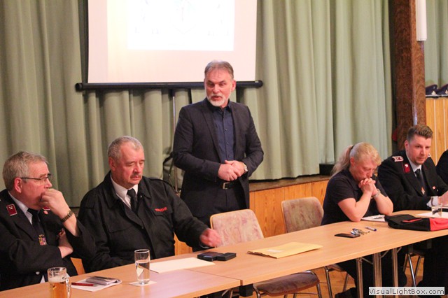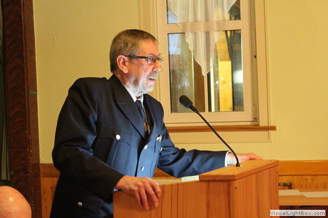 Nach dem Jahresbericht vom Wehrführer haben Gastredner das Wort. N. Junghans von Partnerwehr Abterode würdigt