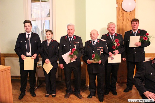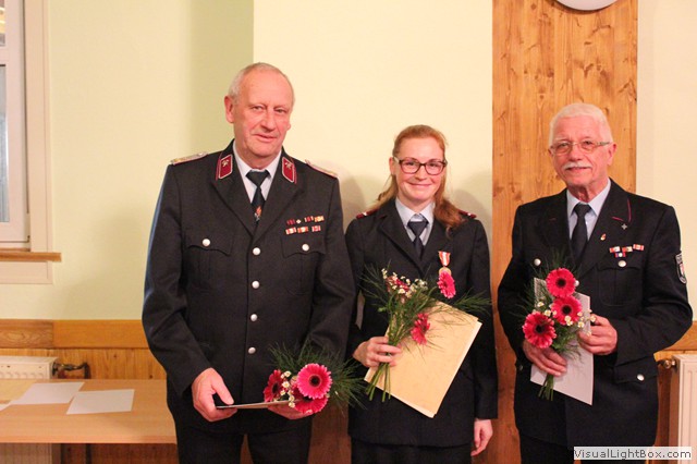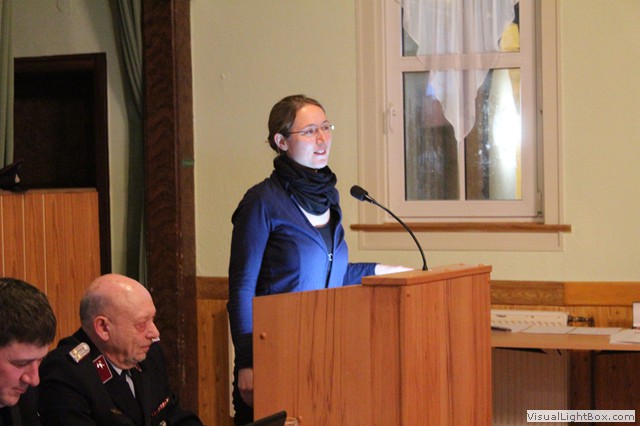 Die Jugendwartin D. Schütz berichtet über die Aktionen unserer Jugendfeuerwehr. Vertreter der Alters u. Ehrenabteilung A. John