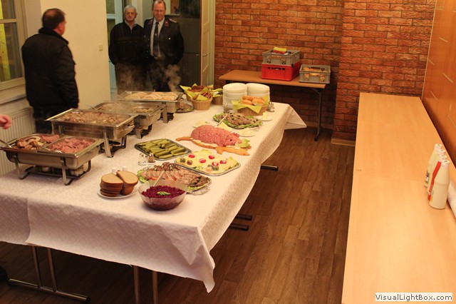 Im Hintergrund wird schon ein üppiges Büfett aufgebaut, das nach der Tagesordnung eröffnet wird.