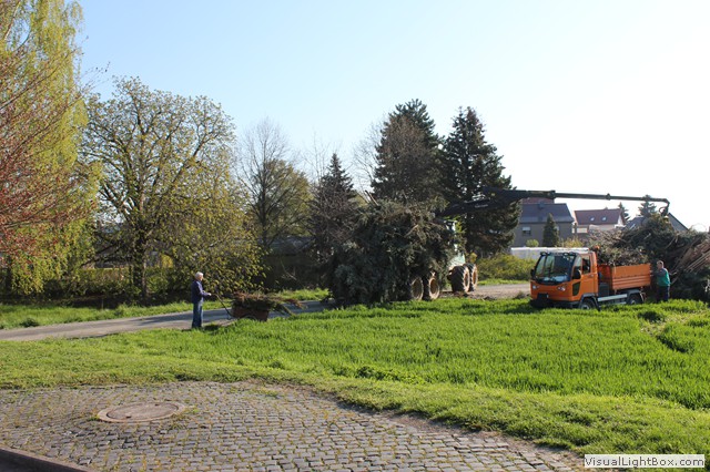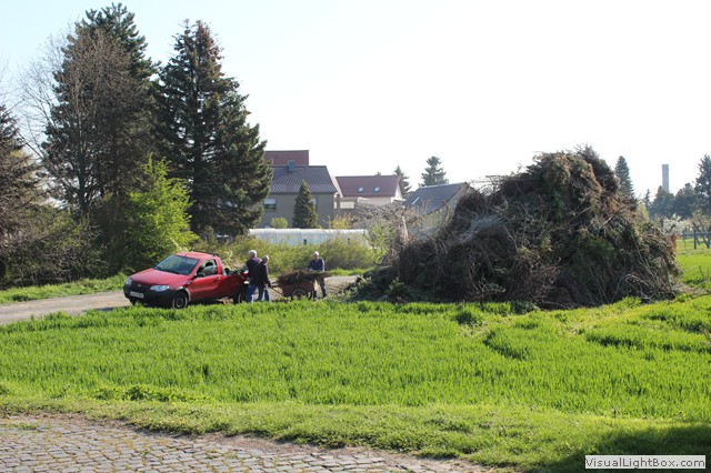 Ein schöner großer Haufen wurde aufgeschichtet. Das Gerätehaus ist jetzt auch schon gut besucht.