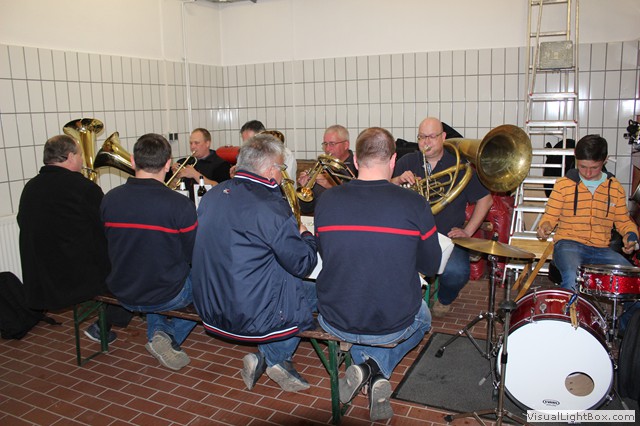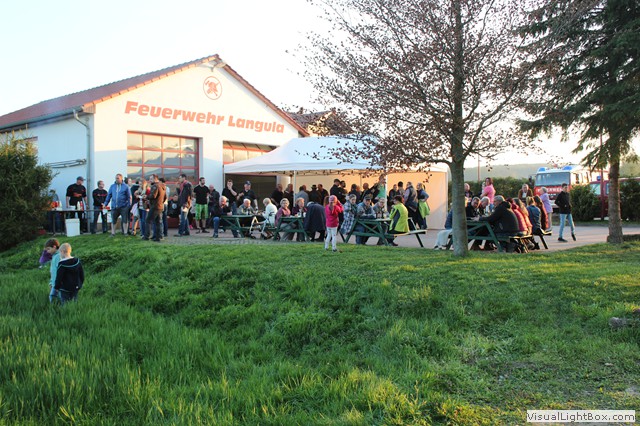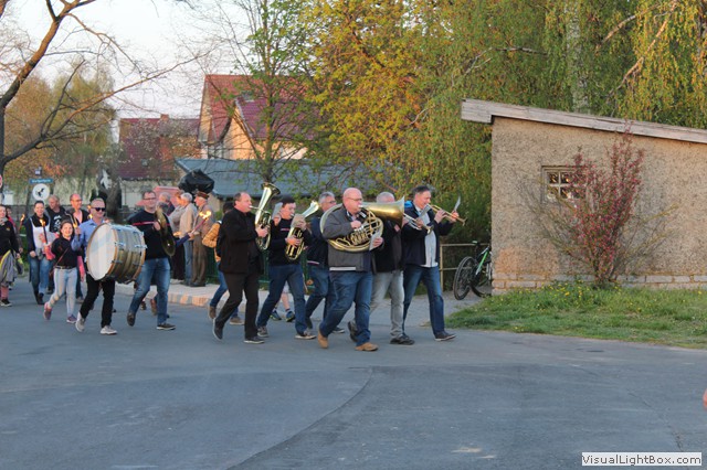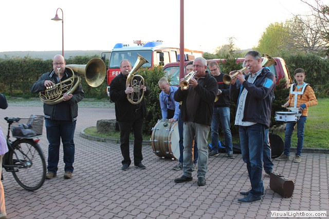 Bei diesen schönem Wetter ist unser Osterfeuer ist sehr gut besucht. Die Blasmusik spiel in der Fahrzeughalle