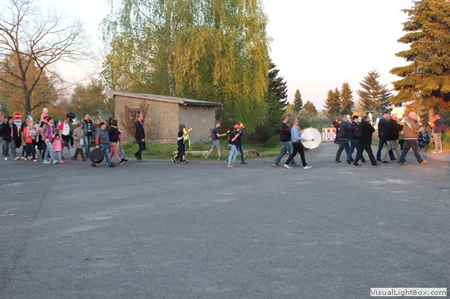 Gegen 19.30 Uhr trifft dann auch der Fackelumzug mit Blasmusik ein. Gleich danach wird der Haufen aus Baumschnitt angezündet.