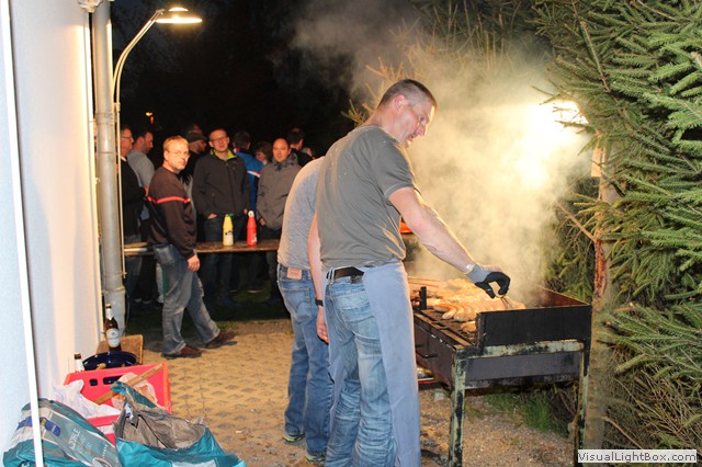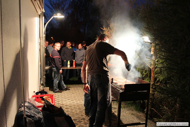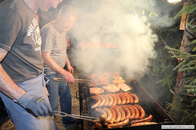 Das Feuer brennt gut, auch der Grill ist gut bestückt. Alles was da drauf liegt ist aus Saalfeld ( UH ).
