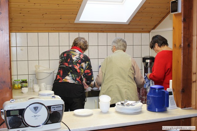 Das Kuchenbüffet wurde gut besucht und danach machen sich einigen Frauen an den Abwasch.