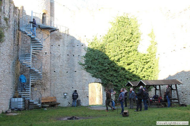 In der Burg war eine Pause angesagt. Zeit für ein Frühstück aus dem Rucksack u. Getränke aus dem Servicemobil.
