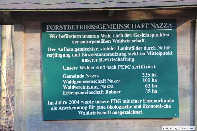 Genug gehört und gesehen geht es nun wieder bergauf zum Rennstieg. Hier ist eine Tafel aufgebaut und erklärt den Wald von Nazza.
