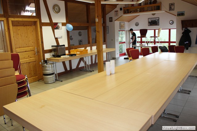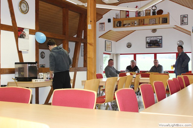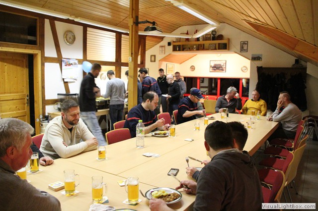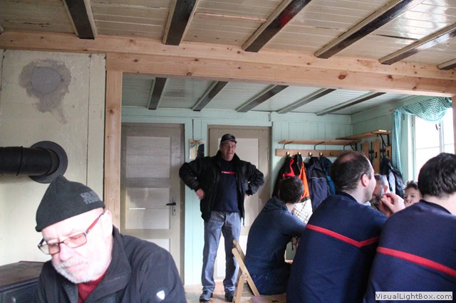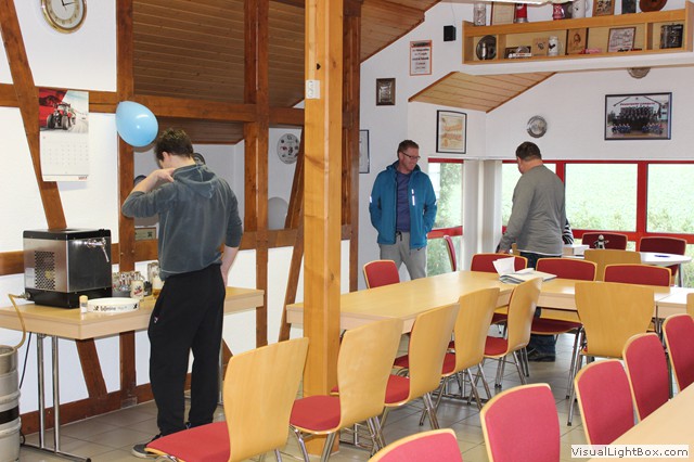 Von hier geht direkt zum Gerätehaus. Eingie Kameraden sind schon da u. stechen das Fass Bier an.