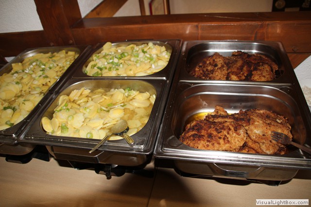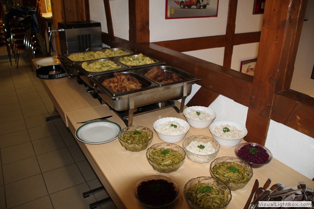 Ein Büfett ist aufgebaut, dass die Wirtsleute von " Zur Brauerei" geliefert haben.