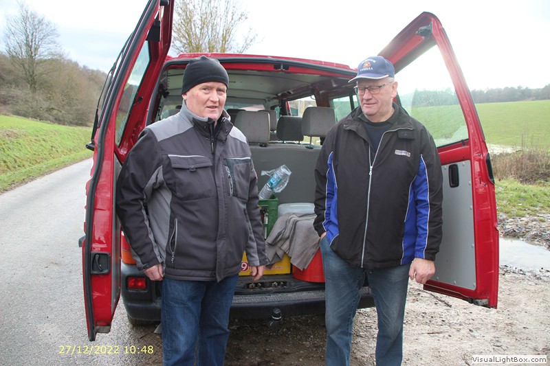 Von weitem sehen wir schon unser Servicemobil, Arndt u. Ronald haben das Auto gut gefüllt.