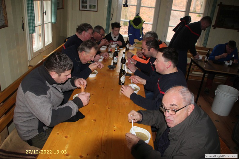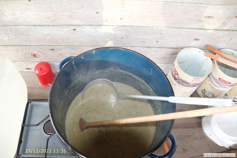 Es ist noch Suppe da, auch die wird alle. Einige Kamerade kommen ja noch dazu.