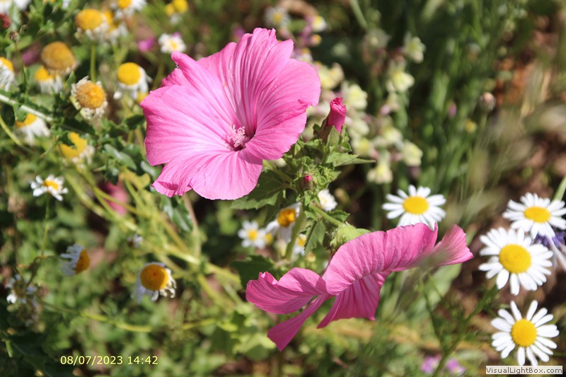 Einige Mohnpflanzen blühen noch und dort ist auch ein MohnSchlafzimmer mit Bett.