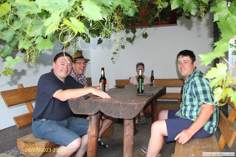 Es wird sich gut unterhalten auch die Schnapsflaschen gehen rum.