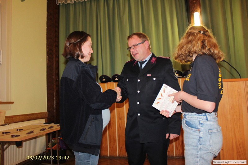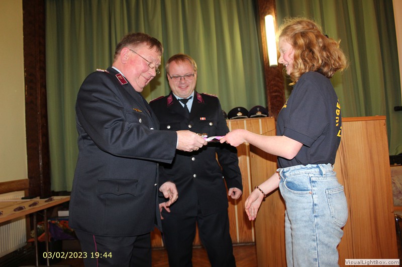 Anschließend werden die Helfer der Jugendfeuerwehr mit Süßigkeiten geehrt.