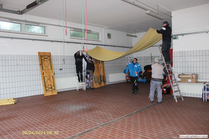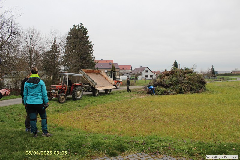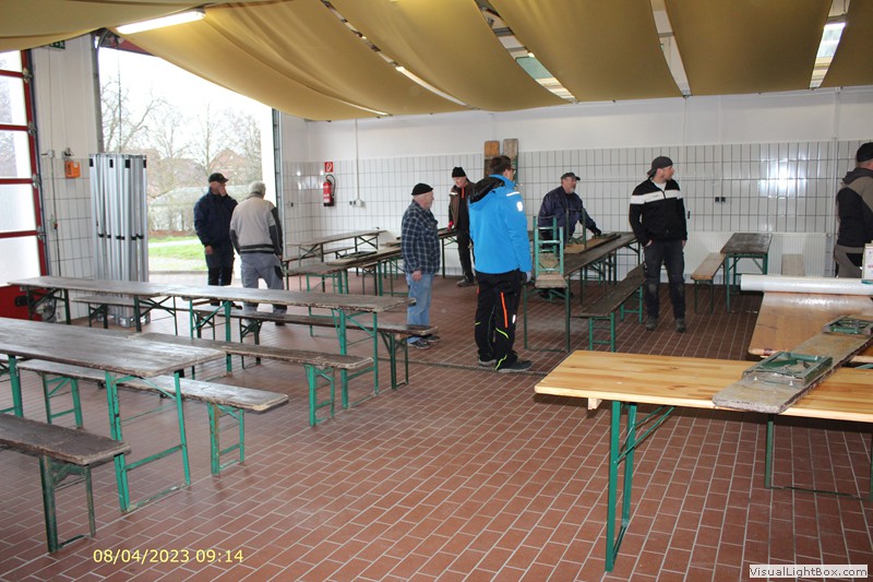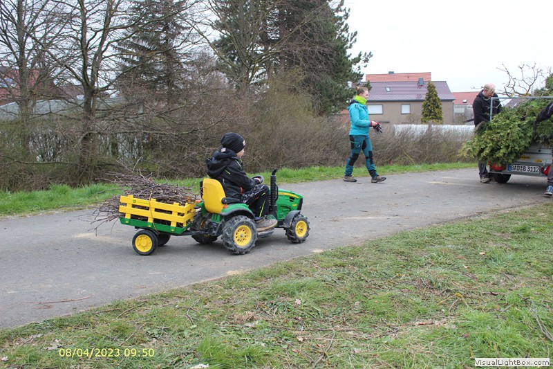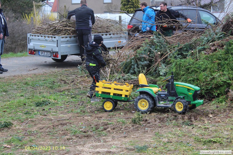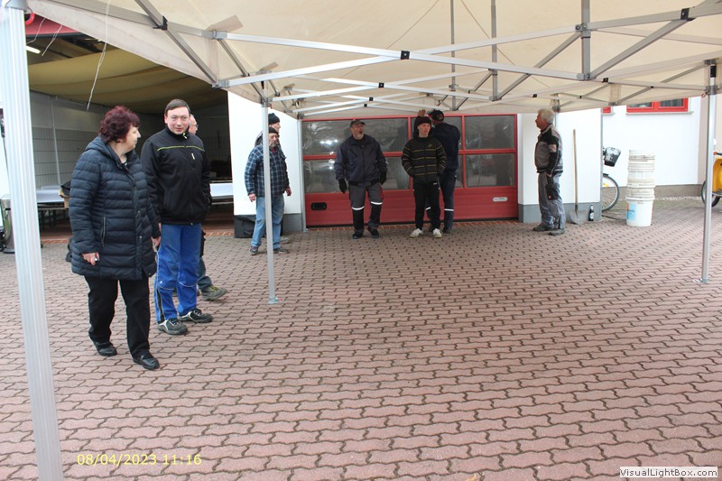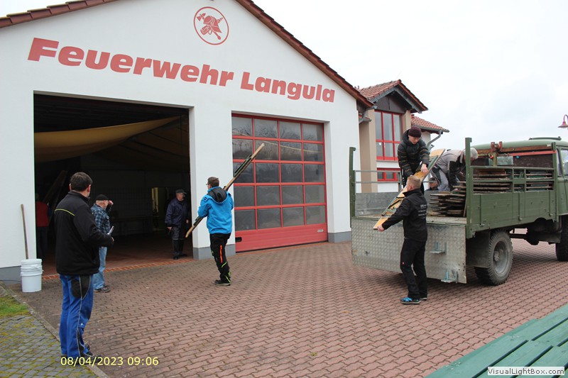 Unser Osterfeuer in diesem Jahr begann 8 Uhr mit dem Aufbau. Fahrzeughalle ausräumen