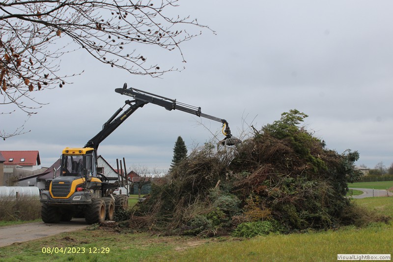 im Dorf geholt und mit der Forstmaschine schön gepackt.