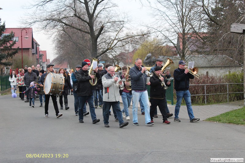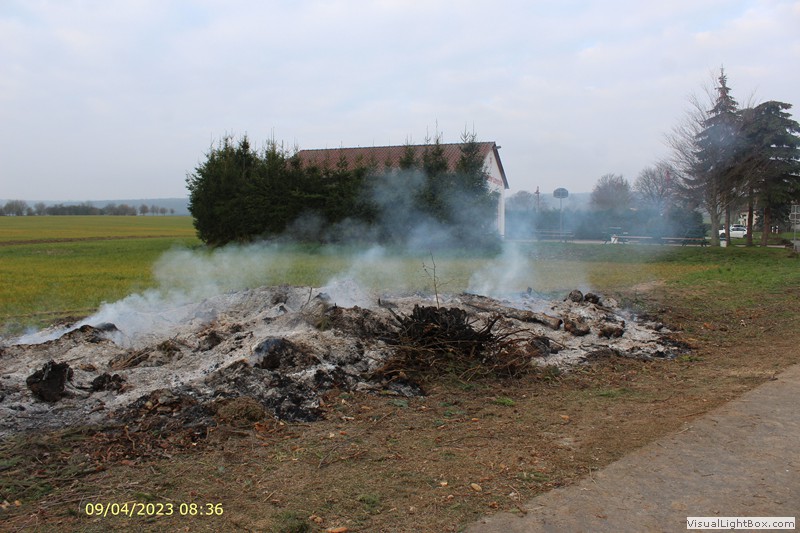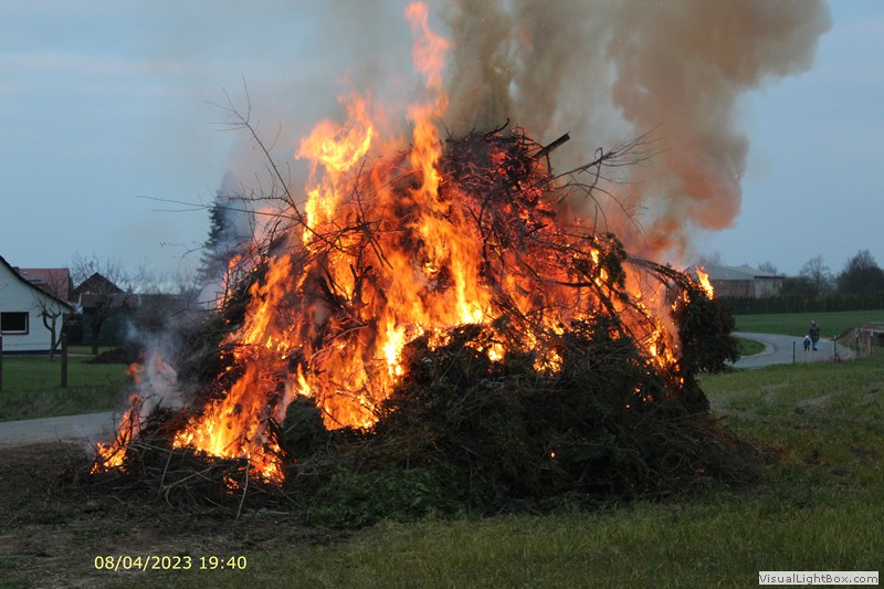Gleich danach wird auch schon das Osterfeuer angezündet. Der Platz füllt sich mit Besuchern.