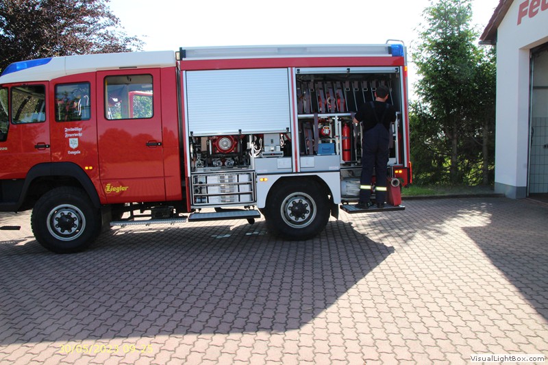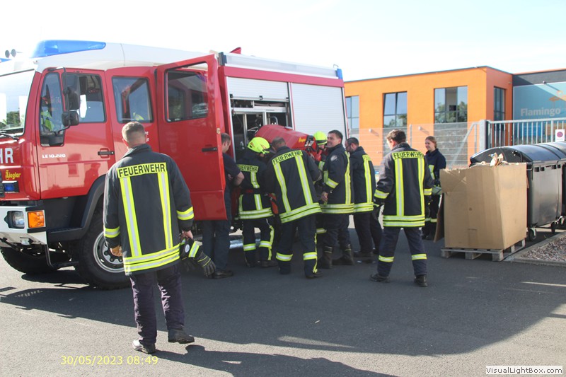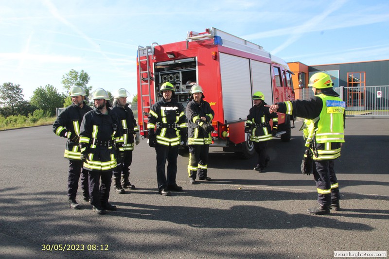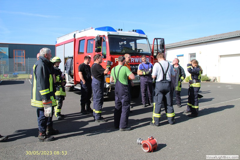 Wieder am Gerätehaus wird das Fahrzeug neu bestückt. Eine kurze Auswertung im Anschluß.