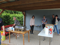 Nach ca. 40 Minuten treffen auch wir am Sportplatz ein. Ein Zelt steht da und auch die Helfer.
