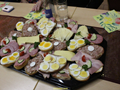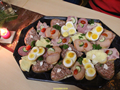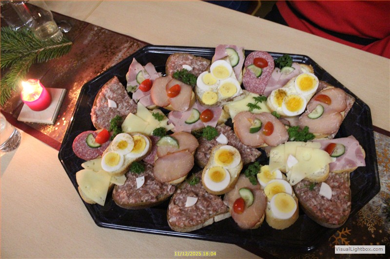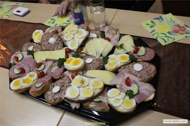 Tabletts mit lecker Schnittchen kommen dann auf die Tische. Zwischendurch mal "Wasser marsch".