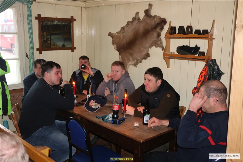 Diese große Rast (13.15 Uhr) machen wir wieder in der Jagthütte. Arndt u. Ronald haben gut eingeheizt.
