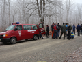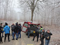 Heyerode. Die Straße ist glatt und es ist nebelig. Das Servicemobil mit A.John u. R.Goy begleiten uns.