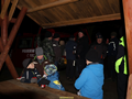 Einige Kameraden haben aber schon in der Hütte Platz genommen u. wärmen sich dort mit der Suppe auf.