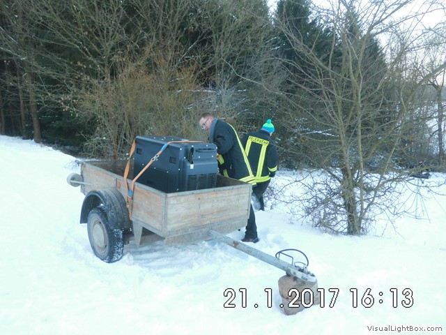Auch oben am Radweg (Harterode) wird noch ein Stromerzeuger angestellt, der dann die Piste beleuchtet.