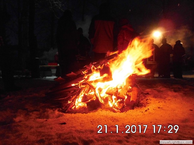 Die Temperatur ist wieder auf -3 Grad gesunken, aber ein warmes Feuer wird gern besucht.