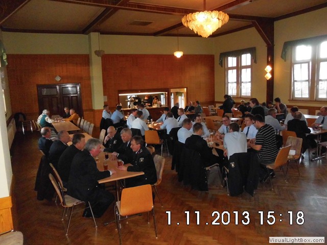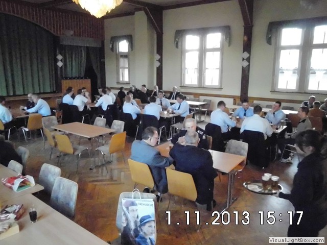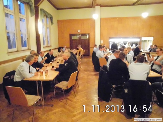 Am nächsten Tag um 15 Uhr sind die Kameraden auf dem Saal und räumen auf.